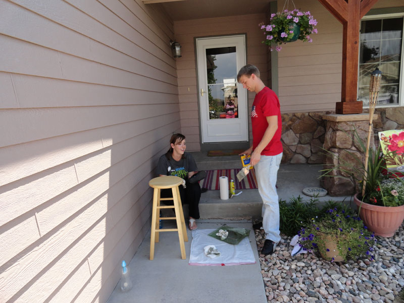 And at the end, the leader of our group (who, incidentally, is also named Rebekah), got up on the roof with me to paint the trim on the peak of the back of the house.